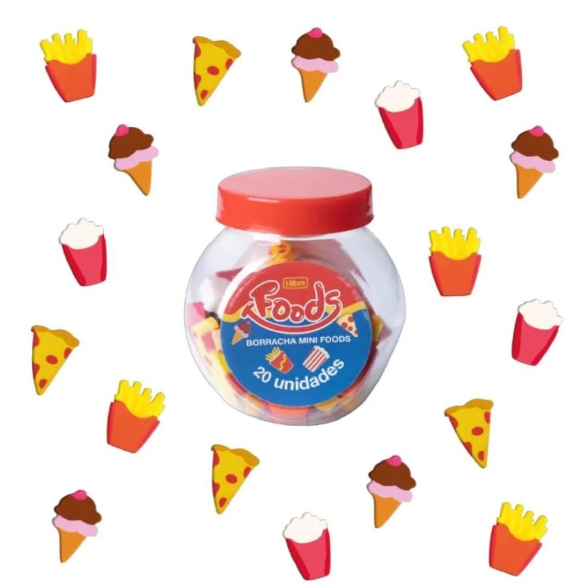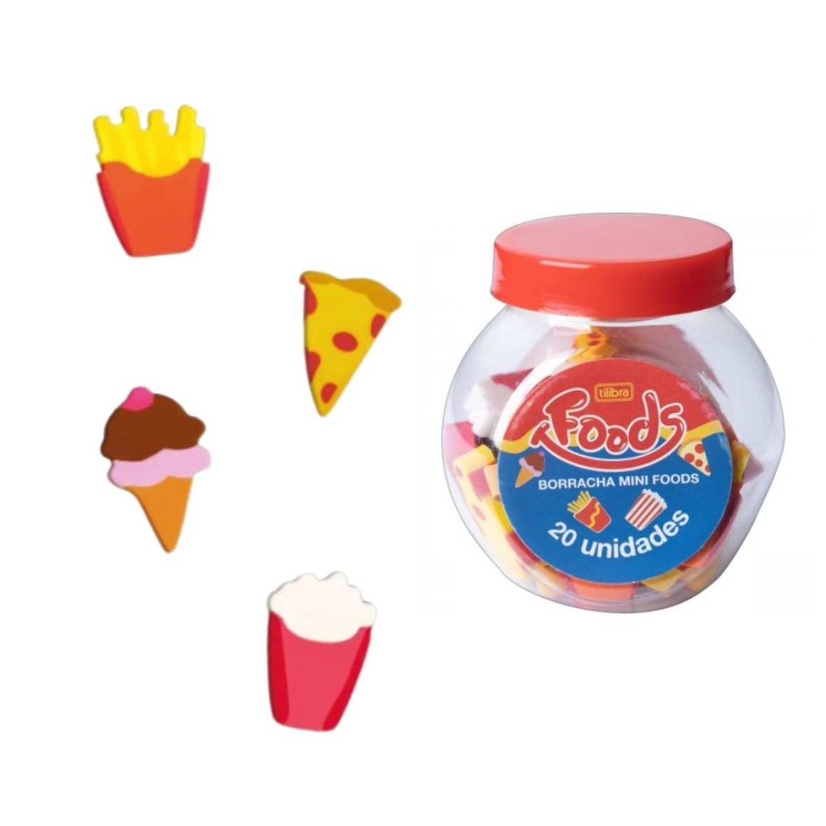 Borracha Mini Foods Pote Com 20 Unididades Tilibra