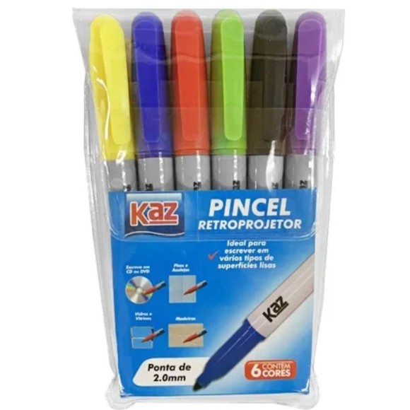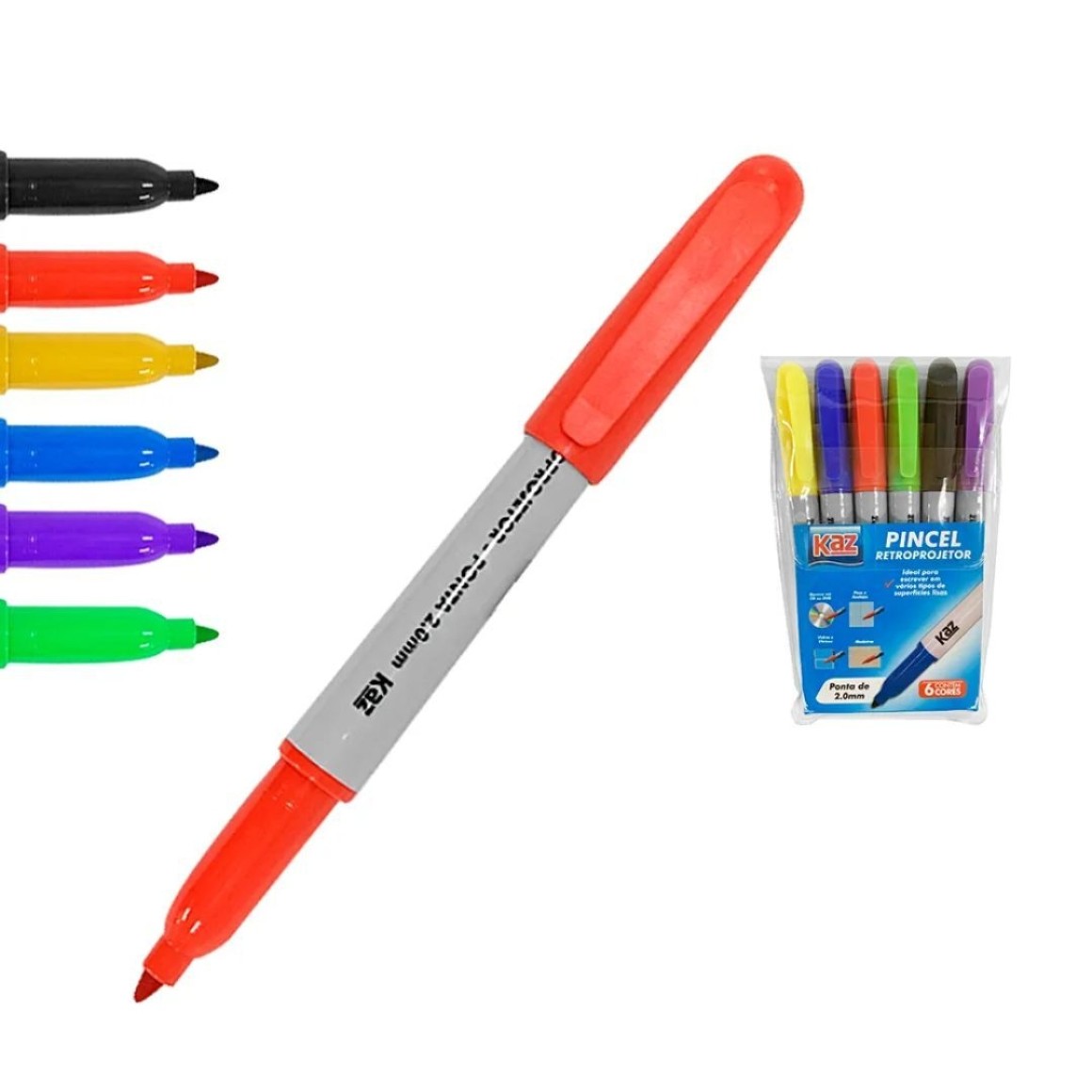 Caneta Retroprojetor/Permanente 2.0mm Com 6 Cores KZ947 KAZ