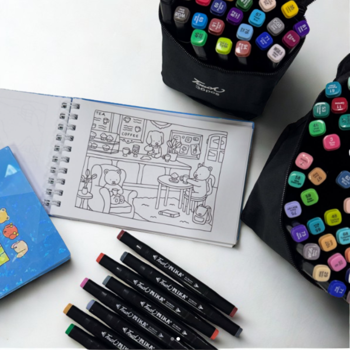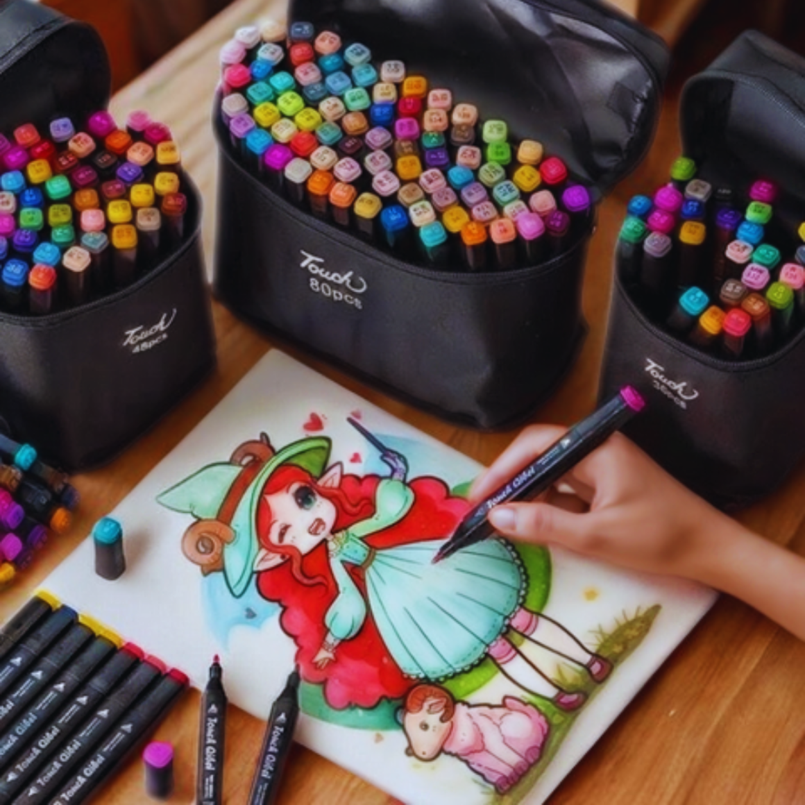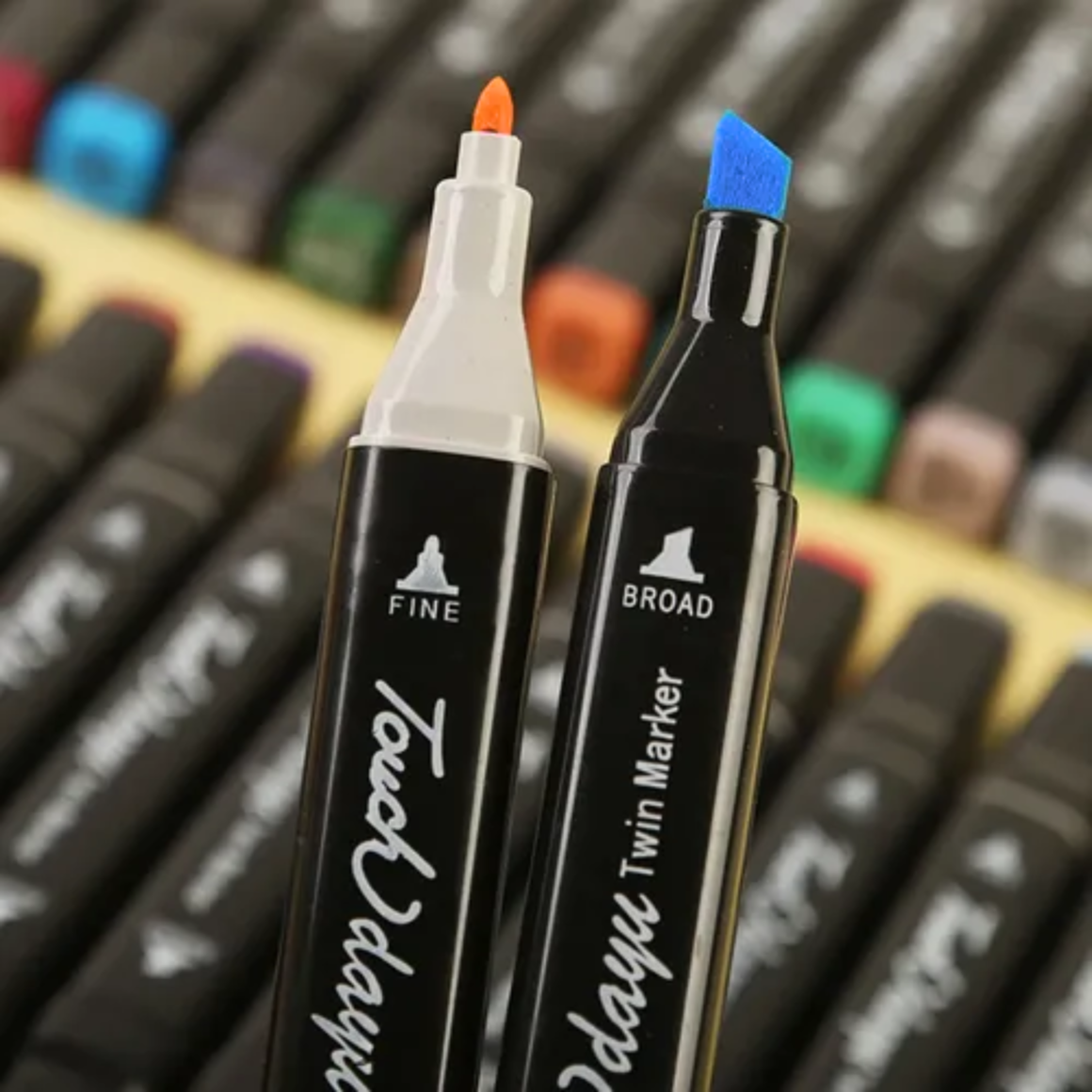 Cada caneta conta com duas pontas: uma chanfrada, ideal para preenchimentos e traços largos, e outra fina, perfeita para contornos e detalhes. A tinta à base de álcool proporciona cobertura uniforme, secagem rápida e cores vibrantes que não desbotam facilmente.