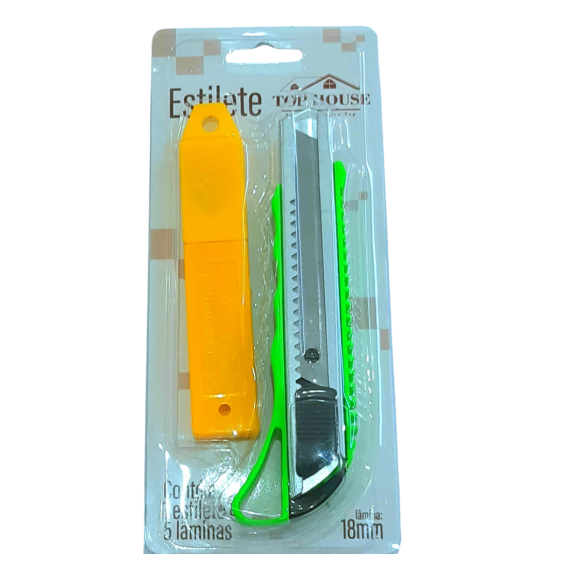 ESTILETE LARGO C/REFORCO METAL 18MM KIT C/5 LAMINAS LARGA TRC7836 TOP HOUSE