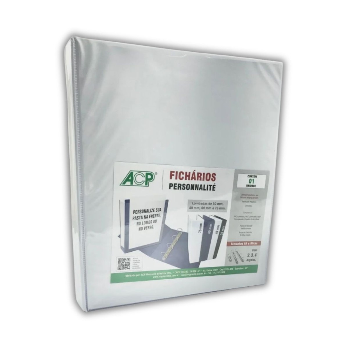 Organize seus documentos com praticidade e estilo utilizando o fichário ofício branco da ACP. Com 4 argolas resistentes e capacidade para até 4 cm de papéis, é perfeito para uso escolar, profissional ou doméstico.