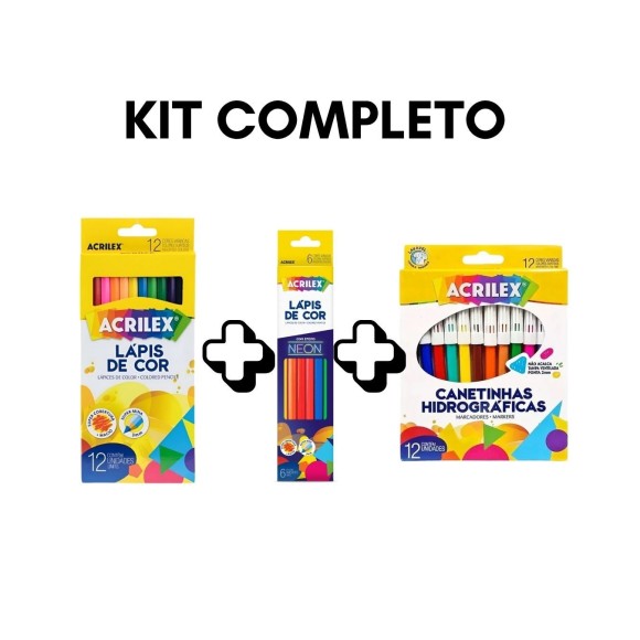 KIT LÁPIS DE COR 12 CORES + LÁPIS NEON 6 CORES + CANETINHA 12 CORES ACRILEX