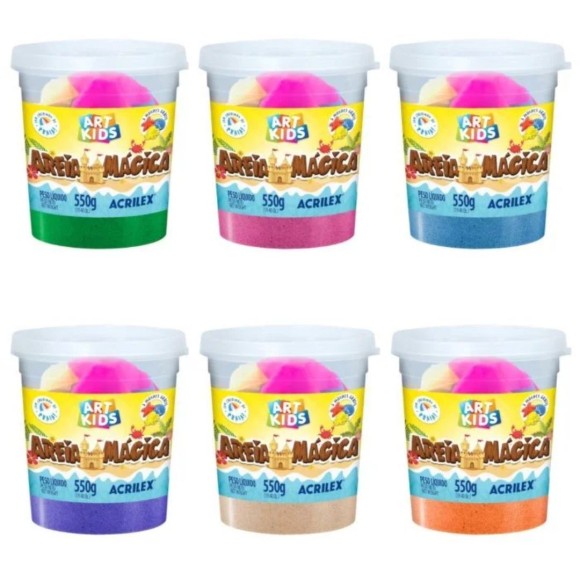 A Areia Mágica 550g da Acrilex é pura diversão e aprendizado para as crianças! Ela proporciona uma experiência sensorial incrível , ajudando a desenvolver a coordenação motora , as habilidades manuais e, claro, a criatividade dos pequenos.