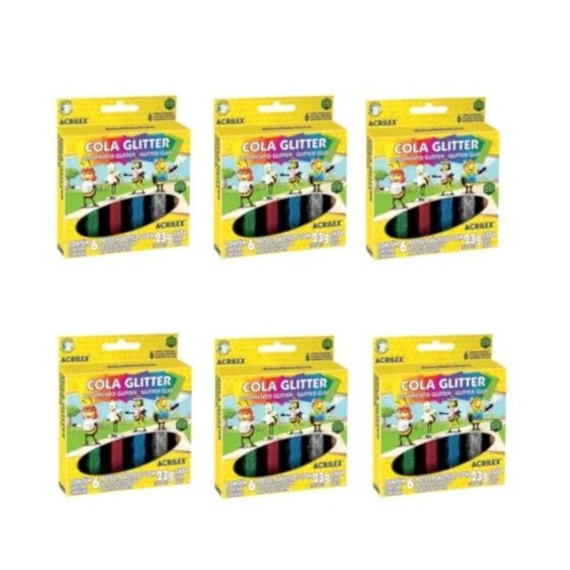 Cola Glitter 23g Acrilex – Kit com 6 Cores (Pacote com 6 Kits)