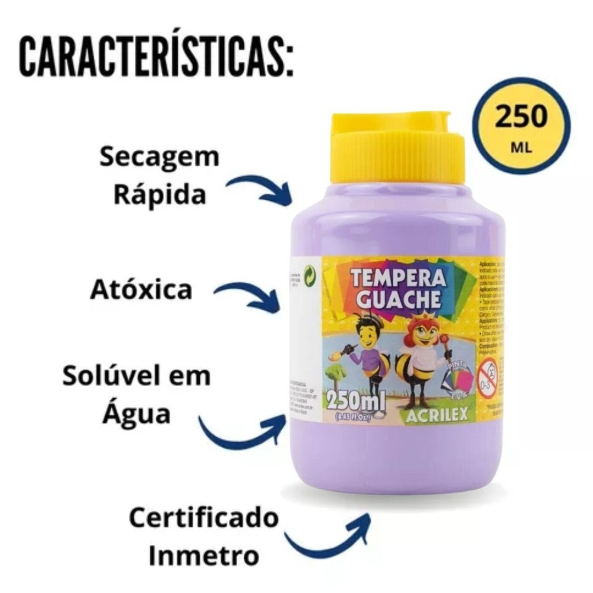 Cores Vibrantes: Quer deixar sua arte incrível? Com o Guache 250ml da Acrilex, suas pinturas vão ganhar vida com cores intensas e super pigmentadas.