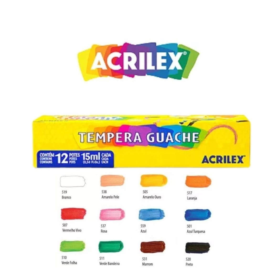 Guache 15ml com 12 Cores Têmpera Acrilex