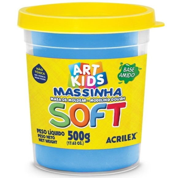 A massinha Soft 500gr Azul Acrilex é uma massinha de modelar produzida a base de amido. Ela foi desenvolvida para uso escolar ou entretenimento. A Massa de Modelar Soft é ideal para atividades de desenvolvimento da coordenação motora e percepção das formas, sendo super macia, com aroma de tutti-frutti, cores vivas e vibrantes. Ótima para quem gosta de atividades criatividades e artesanais.