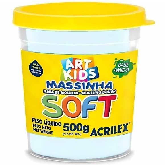 A massinha Soft 500gr Branco Acrilex é uma massinha de modelar produzida a base de amido. Ela foi desenvolvida para uso escolar ou entretenimento. A Massa de Modelar Soft é ideal para atividades de desenvolvimento da coordenação motora e percepção das formas, sendo super macia, com aroma de tutti-frutti, cores vivas e vibrantes. Ótima para quem gosta de atividades criatividades e artesanais.