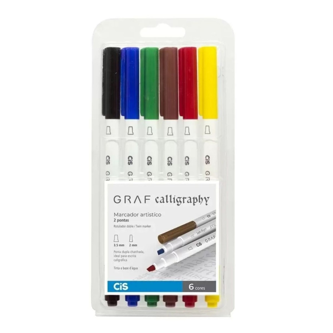Caneta Hidrográfica Kit Com 6 Cores E 2 Pontas Graf Calligraphy - CIS