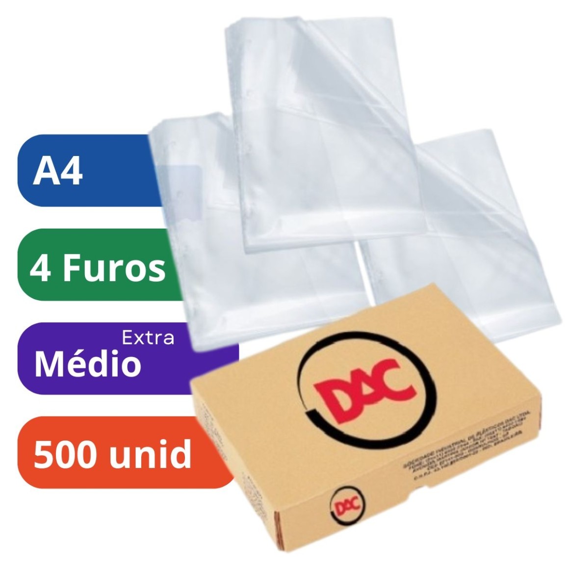 Transforme suas tarefas de armazenamento e organização com o Saco Plástico PP A4 4 FuroS 22x30 Com 500 Médio 0,12 DAC. Garanta já o seu e descubra a facilidade e praticidade, ideal para fichário, pasta catálogo, armazenar documentos e muito mais.