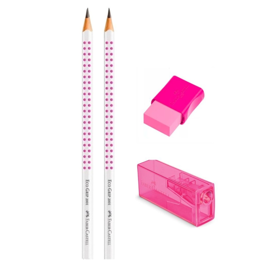 2. KIT 2 Lápis Grip Rosa Neon +Borracha +Apontador - FABER CASTELL
