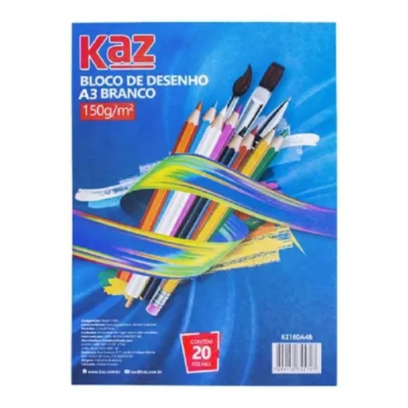 Bloco Para Desenho A3 Branco 150gr Com 20 Folhas KAZ