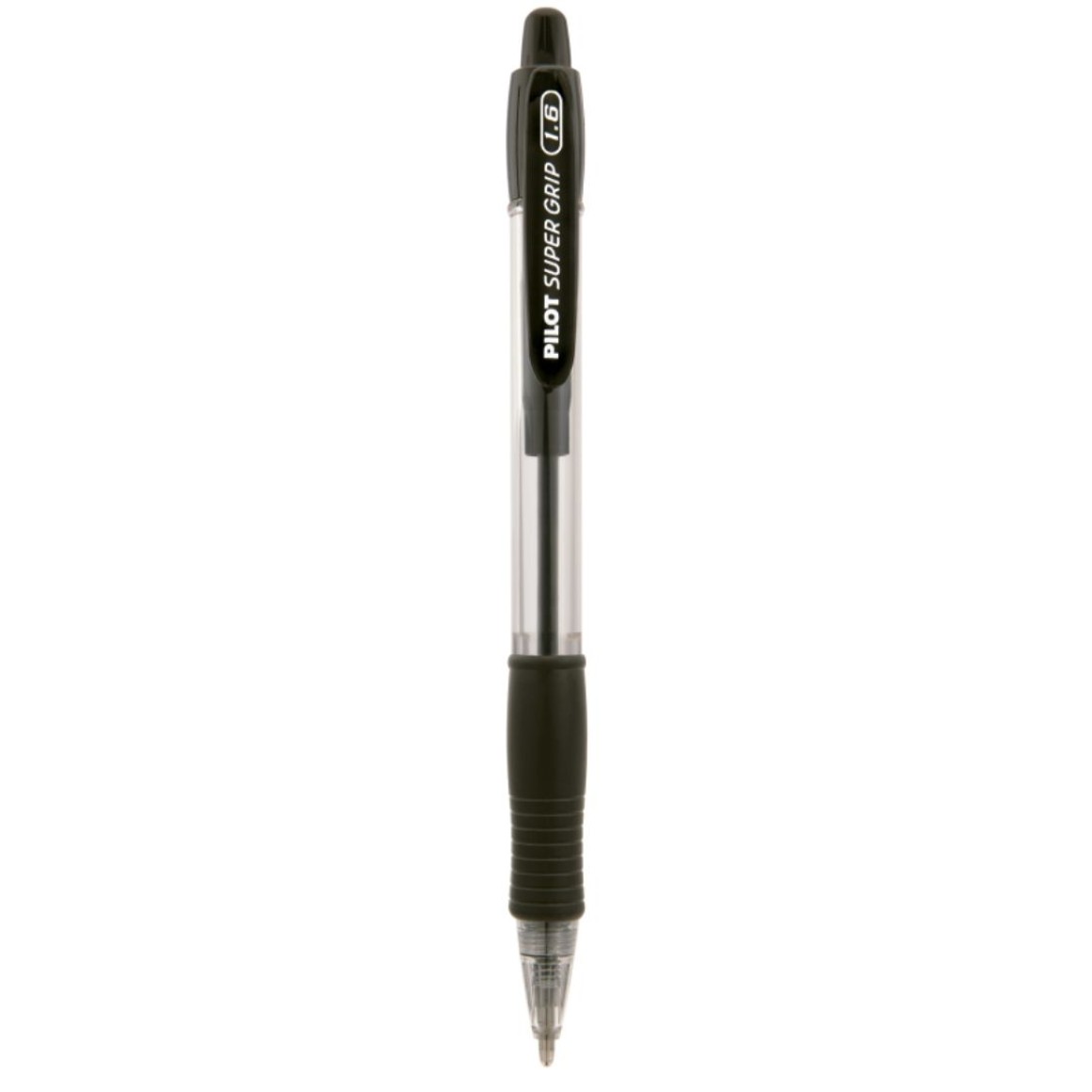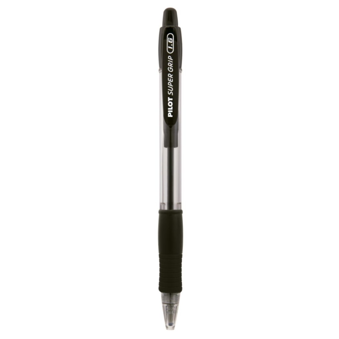 • Caneta esferográfica Pilot Super Grip 1.6mm Retrátil, com corpo arredondado e grip em borracha anatômica.
