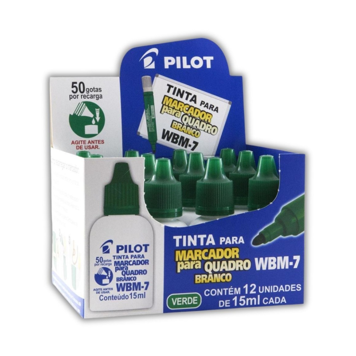 TINTA PARA MARCADOR DE QUADRO BRANCO PILOT WBM-7 CAIXA COM 12 UNIDADES DE 15ML CADA - VERDE