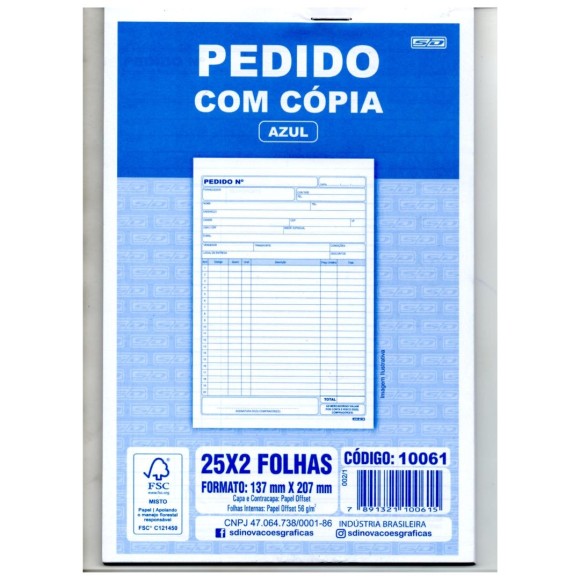 - 50 folhas de 2 vias (50x2 folhas): registra e mantém uma cópia do pedido.