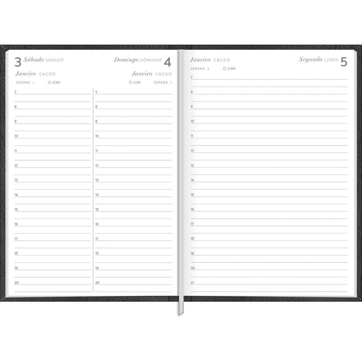 4. Layout Funcional: Cada página é cuidadosamente projetada para oferecer amplo espaço para anotações diárias, compromissos e metas, mantendo sua vida organizada e produtiva.