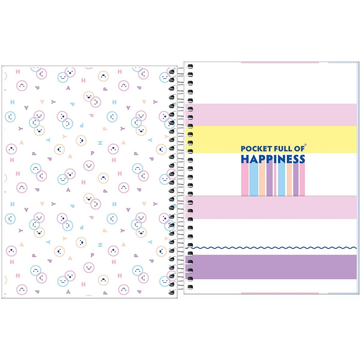 O Caderno Espiral Capa Dura Colegial 10 Matérias Happy Colorido 160 Folhas possui formato inovador e compacto, ideal para quem gosta de praticidade. Possui capa dura, bolsa de papel decorada, folhas pautadas decoradas e folhas coloridas sem pauta e espiral colorido. Ideal para o dia a dia.