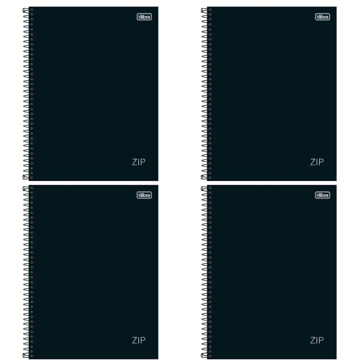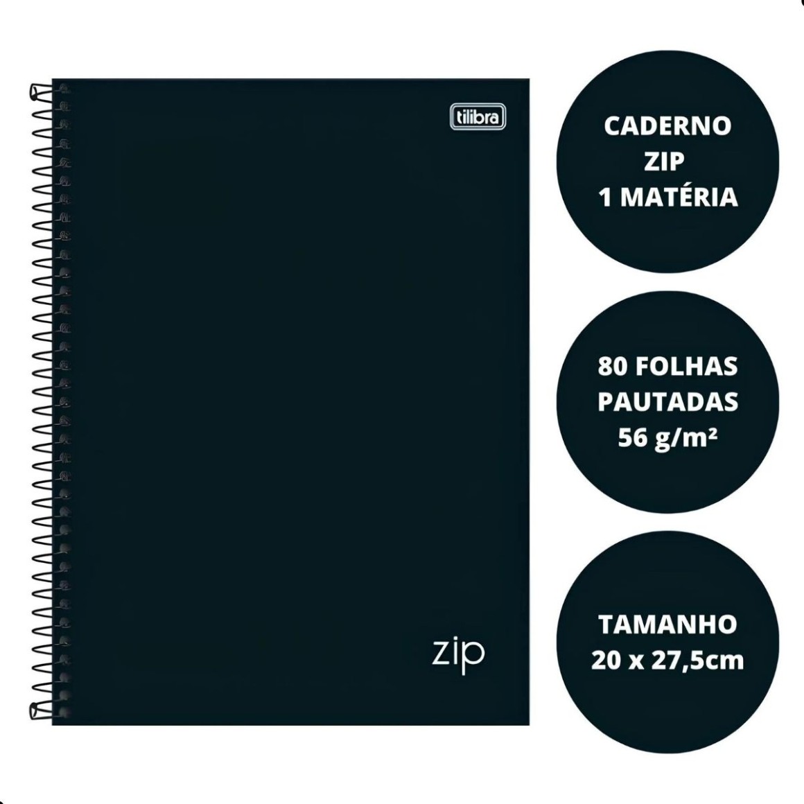 2. CADERNO ESPIRAL UNIVERSITARIO 80FLS ZIP PRETO PACOTE COM 4 UNIDADES TILIBRA