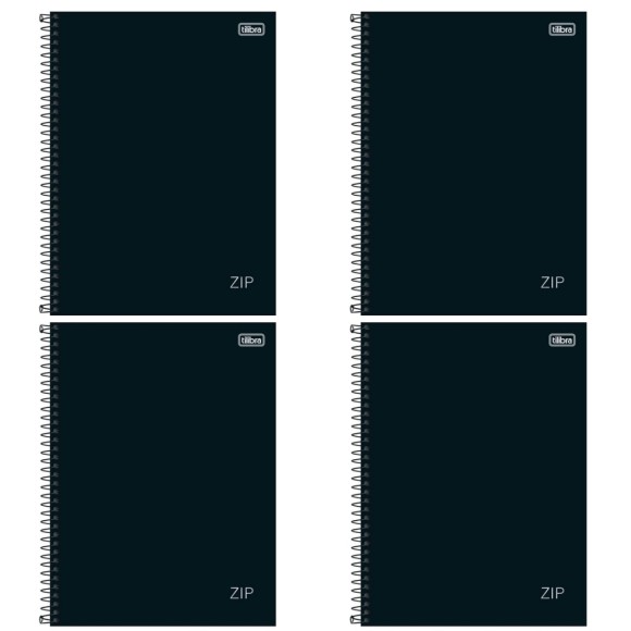 CADERNO ESPIRAL UNIVERSITARIO 80FLS ZIP PRETO PACOTE COM 4 UNIDADES TILIBRA