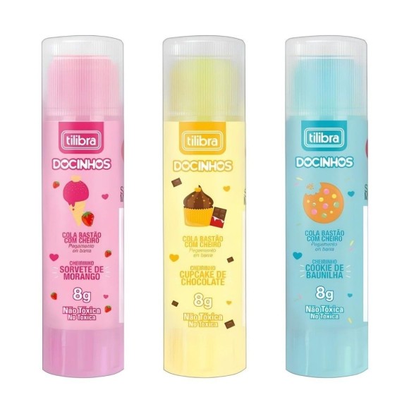 Dê uma nova cara à sua rotina de colagem com a Cola em Bastão 8g com Cheiro Tilibra! Com 3 modelos irresistíveis, você vai adorar usar essa cola enquanto se inspira nos aromas deliciosos de Brownie de Chocolate, Cookie de Baunilha e Sorvete de Morango. Confira por que esse trio é a escolha perfeita para deixar seus projetos mais saborosos!