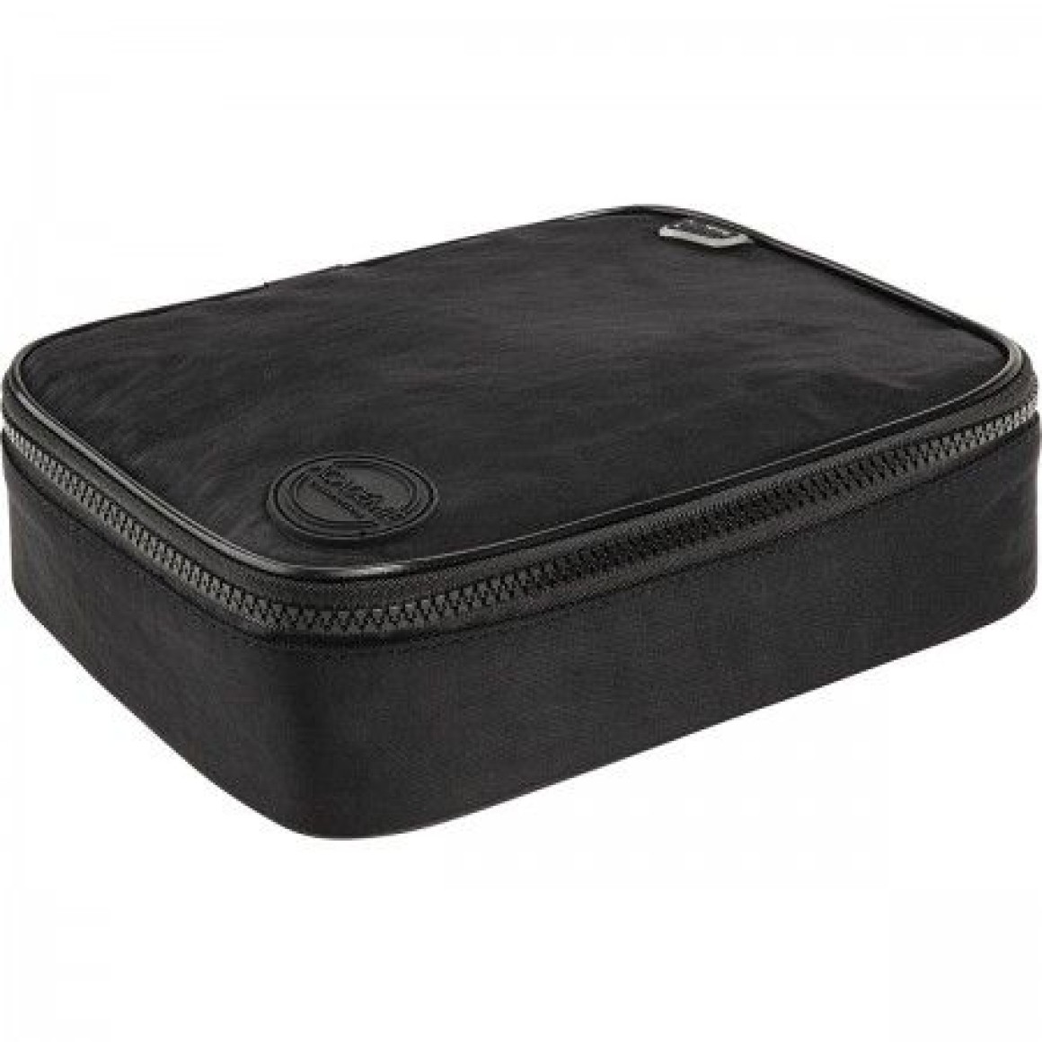 - Design: O design é minimalista, com uma estrutura retangular que proporciona um excelente aproveitamento do espaço interno. O estojo tem um formato box grande, tornando-o ideal para ser colocado em mochilas e bolsas.