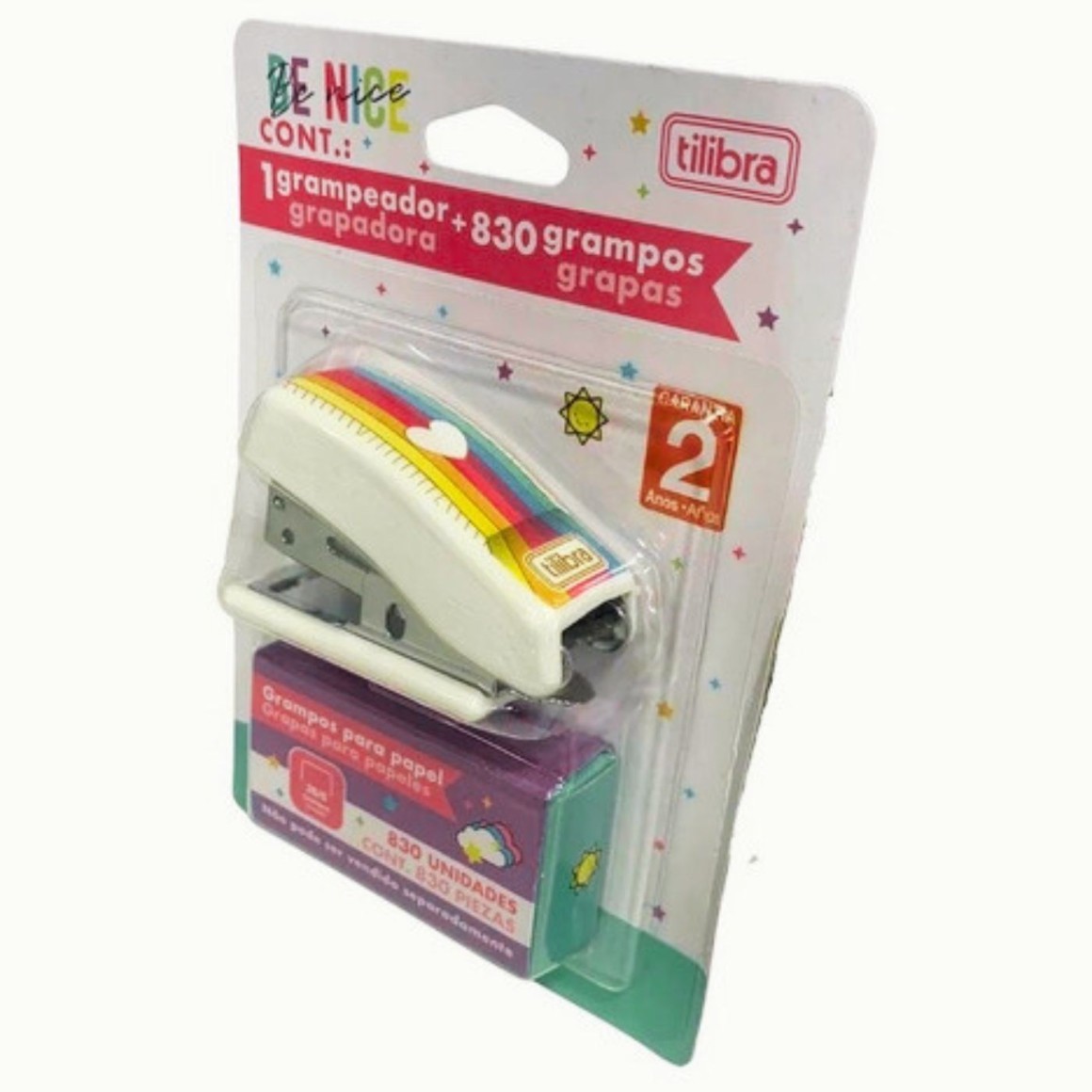 Grampeador 12 Fls Mini Com Extrator Be Nice + 830 Grampos N26/6