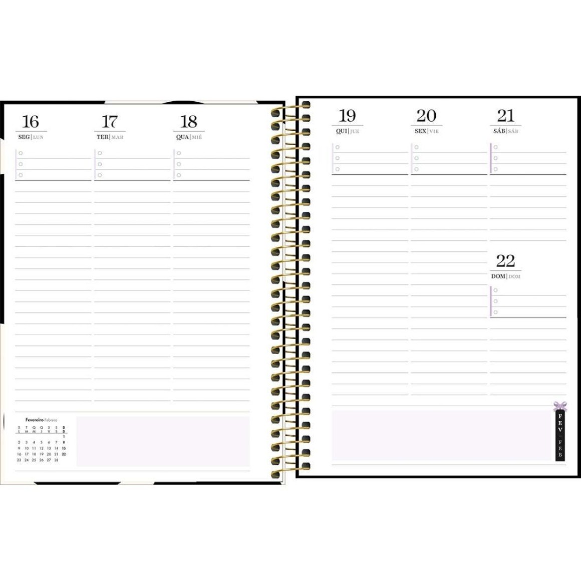 4. Layout Funcional: Cada página é cuidadosamente projetada para oferecer amplo espaço para anotações diárias, compromissos e metas, mantendo sua vida organizada e produtiva.
