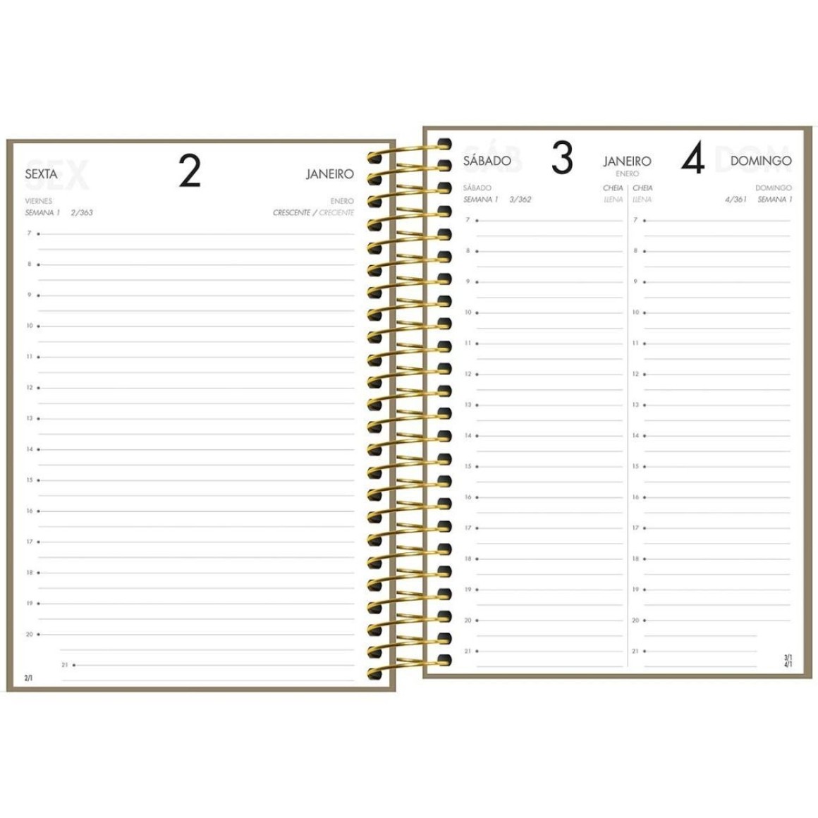 4. Layout Funcional: Cada página é cuidadosamente projetada para oferecer amplo espaço para anotações diárias, compromissos e metas, mantendo sua vida organizada e produtiva.