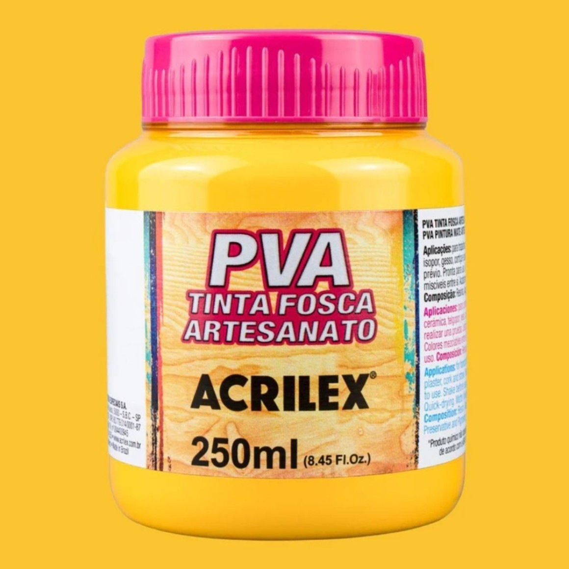 A Tinta Plástica PVA Fosca 250ml Acrilex é perfeita para dar um toque personalizado e elegante aos seus projetos artesanais! PVA Tinta Fosca para Artesanato , essa tinta é feita à base de Látex PVA , conforto um acabamento fosco e sofisticado.