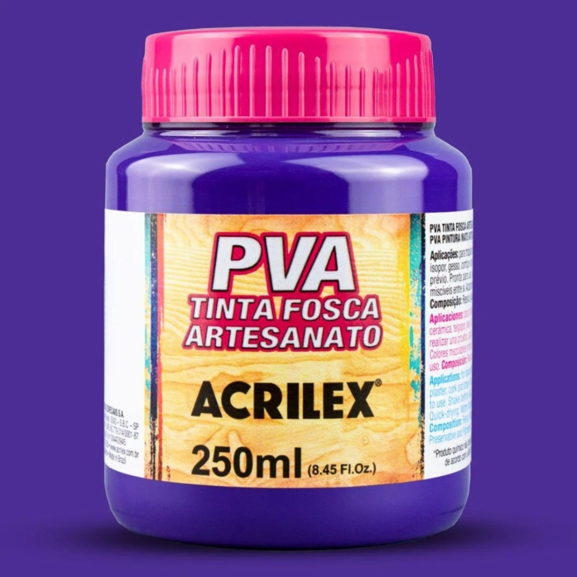 A Tinta Plástica PVA Fosca 250ml Acrilex é perfeita para dar um toque personalizado e elegante aos seus projetos artesanais! PVA Tinta Fosca para Artesanato , essa tinta é feita à base de Látex PVA , conforto um acabamento fosco e sofisticado.