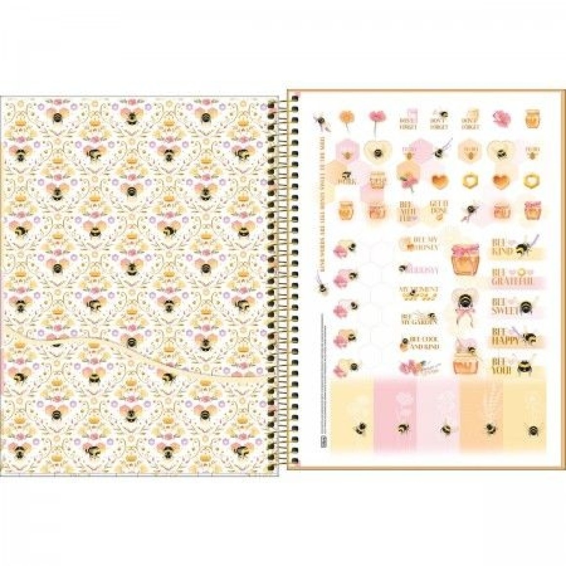 O Caderno Espiral Capa Dura Universitário 1 Matéria Honey Bee 80 Folhas possui capa dura com a parte interna decorada, bolsa de papel decorada para guardar trabalhos e anotações, folha com adesivos funcionais, folhas pautadas decoradas e espiral colorido. Ideal para o dia a dia na escola ou na faculdade.