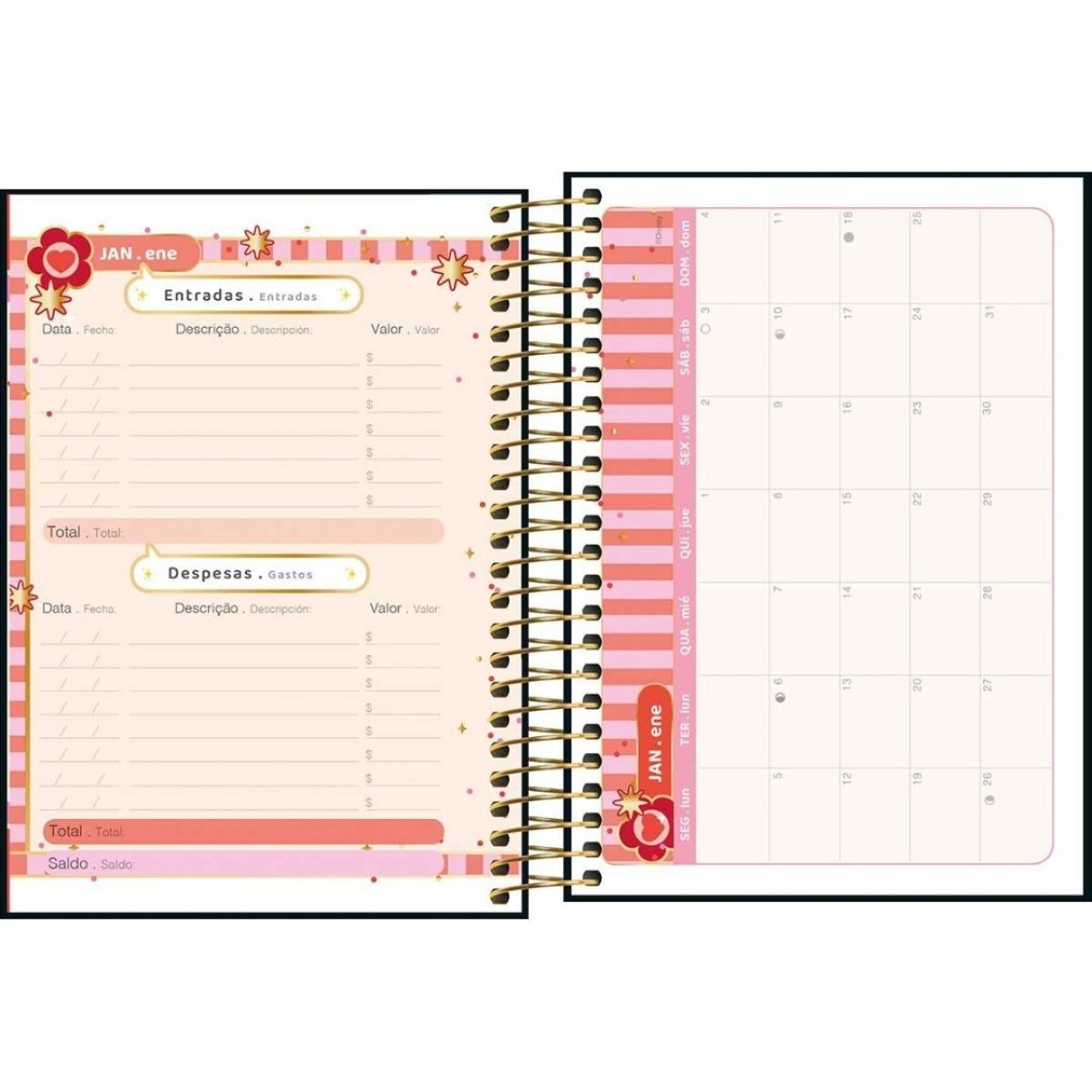 4. Layout Funcional: Cada página é cuidadosamente projetada para oferecer amplo espaço para anotações diárias, compromissos e metas, mantendo sua vida organizada e produtiva.