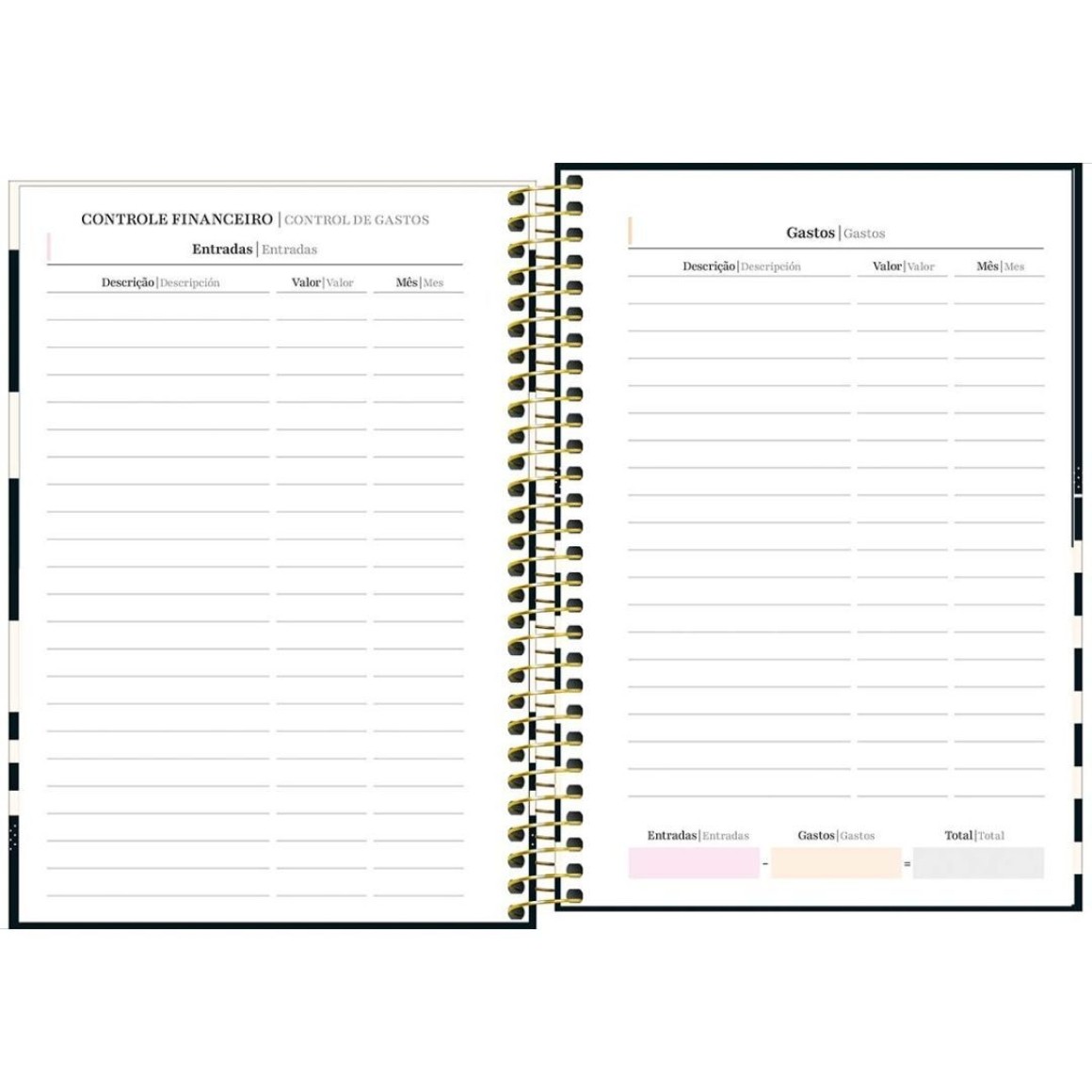 4. Layout Funcional: Cada página é cuidadosamente projetada para oferecer amplo espaço para anotações diárias, compromissos e metas, mantendo sua vida organizada e produtiva.