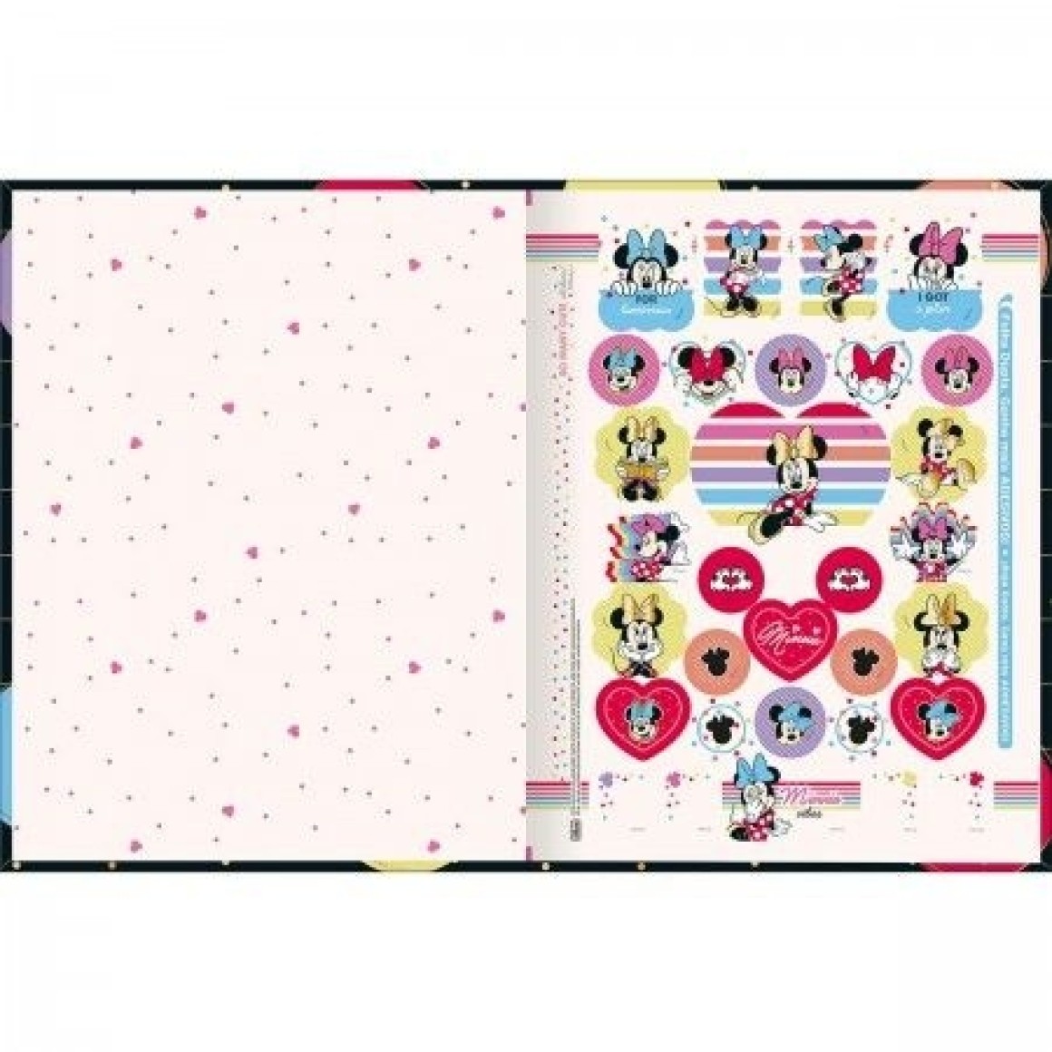O Caderno Brochura Capa Dura Universitário Minnie 80 Folhas possui capa dura com a parte interna decorada, folha de adesivos e folhas pautadas. Com a lombada quadrada e acabamento diferenciado que garante maior resistência ao produto, é ideal para o dia a dia na escola.