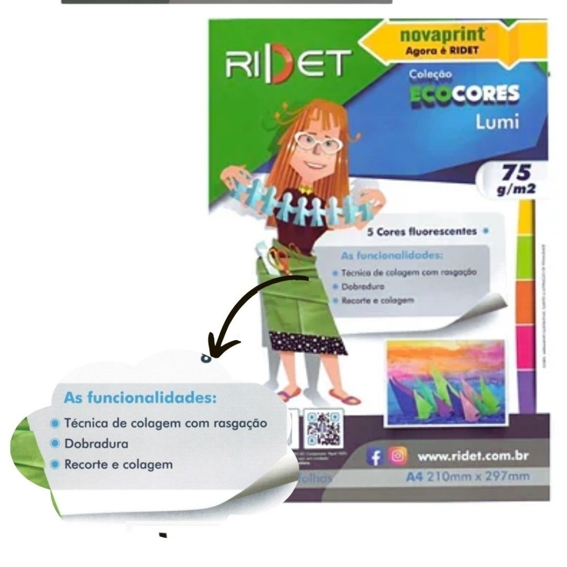 - Bloco Criativo Lumi A4 05 Cores 50 Folhas 75gr 210X297mm Ecocores RIDET NOVAPRINT Ref.010008