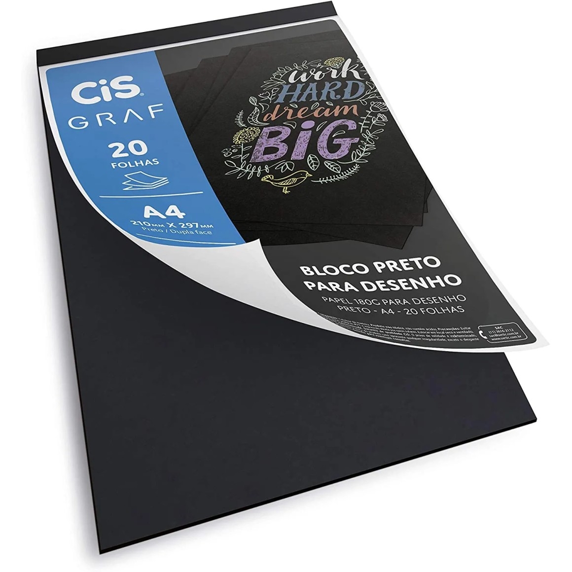 Bloco Para Desenho A4 Preto 180gr Com 20 Folhas Graf - CIS
