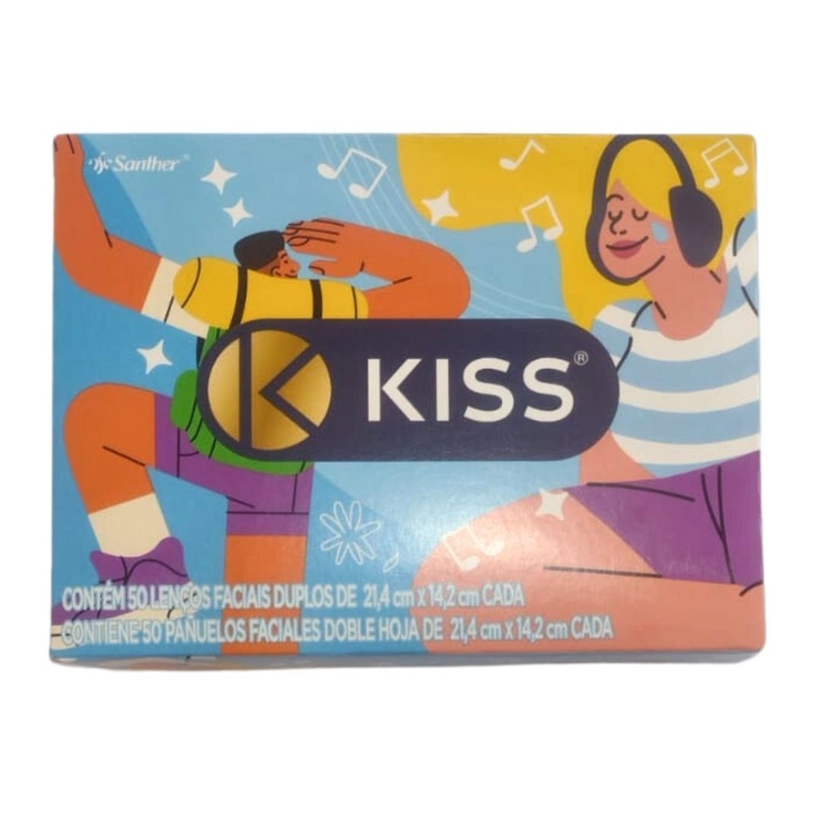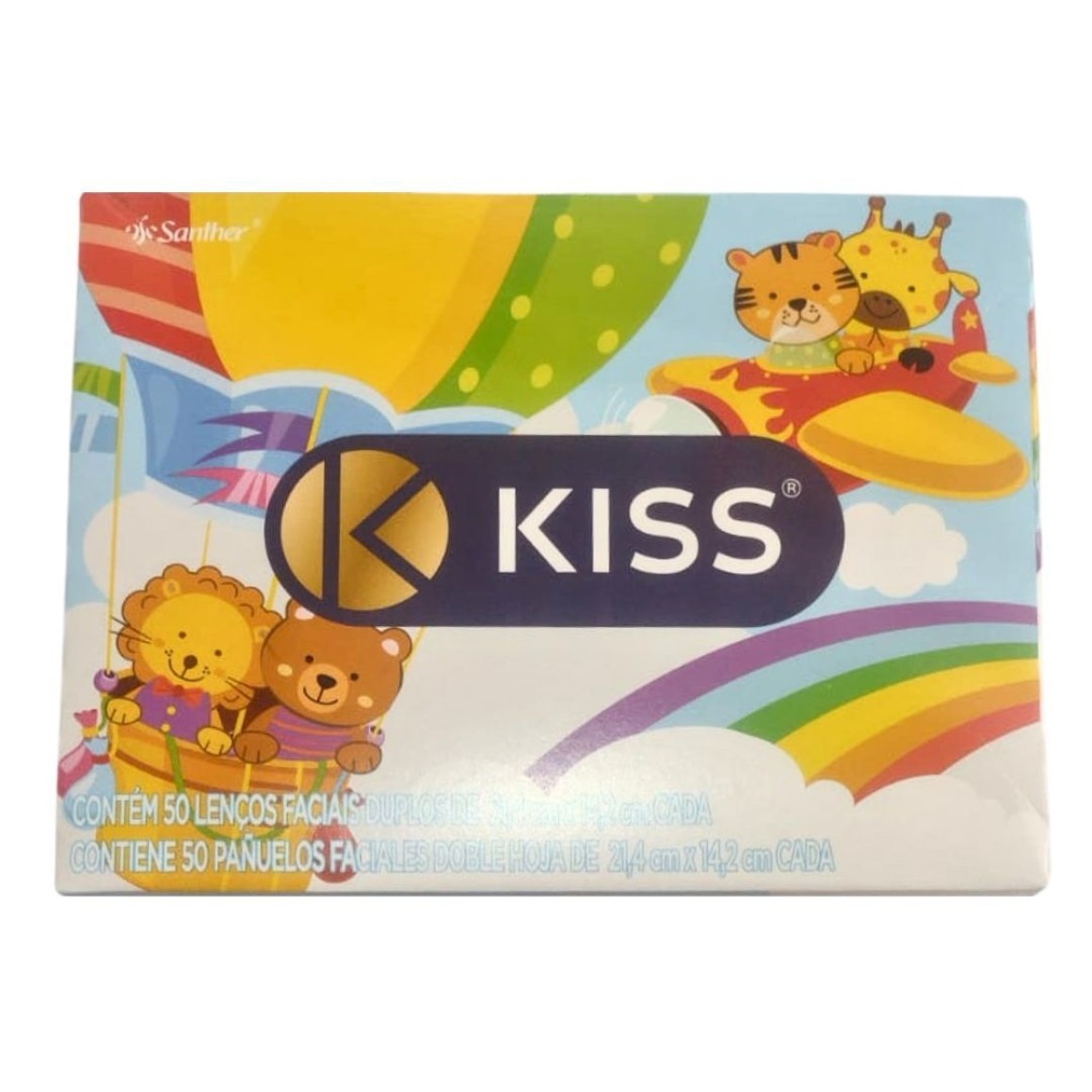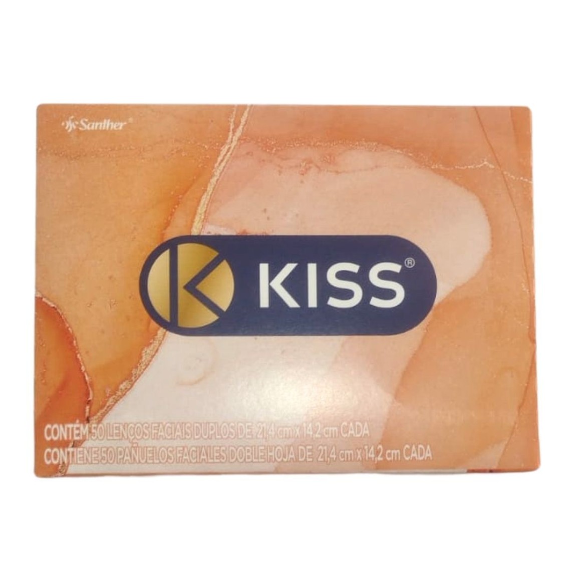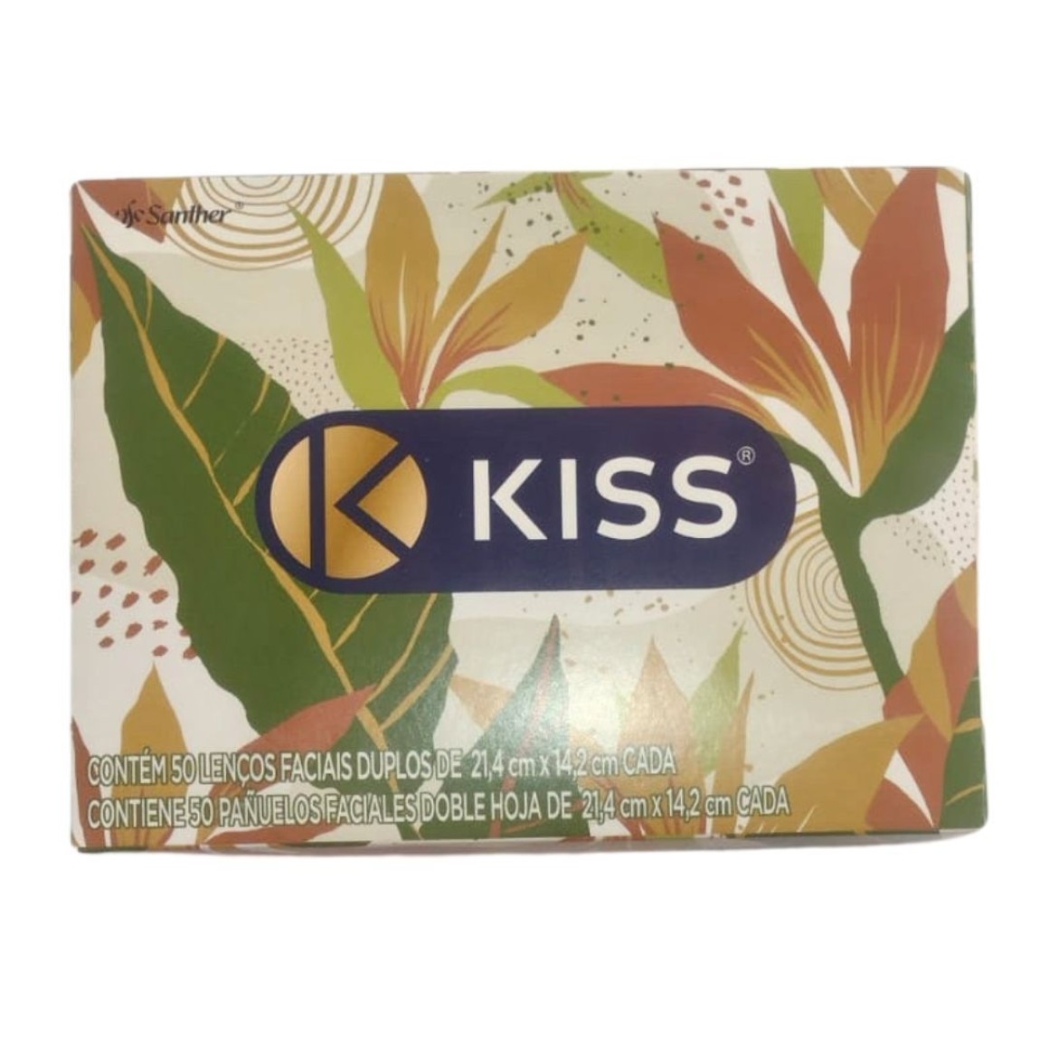 Lenço de Papel Folha Dupla Kiss - Pacote com 50 Unidades (21,4 x 14,2 cm)