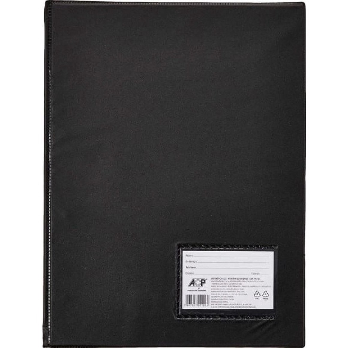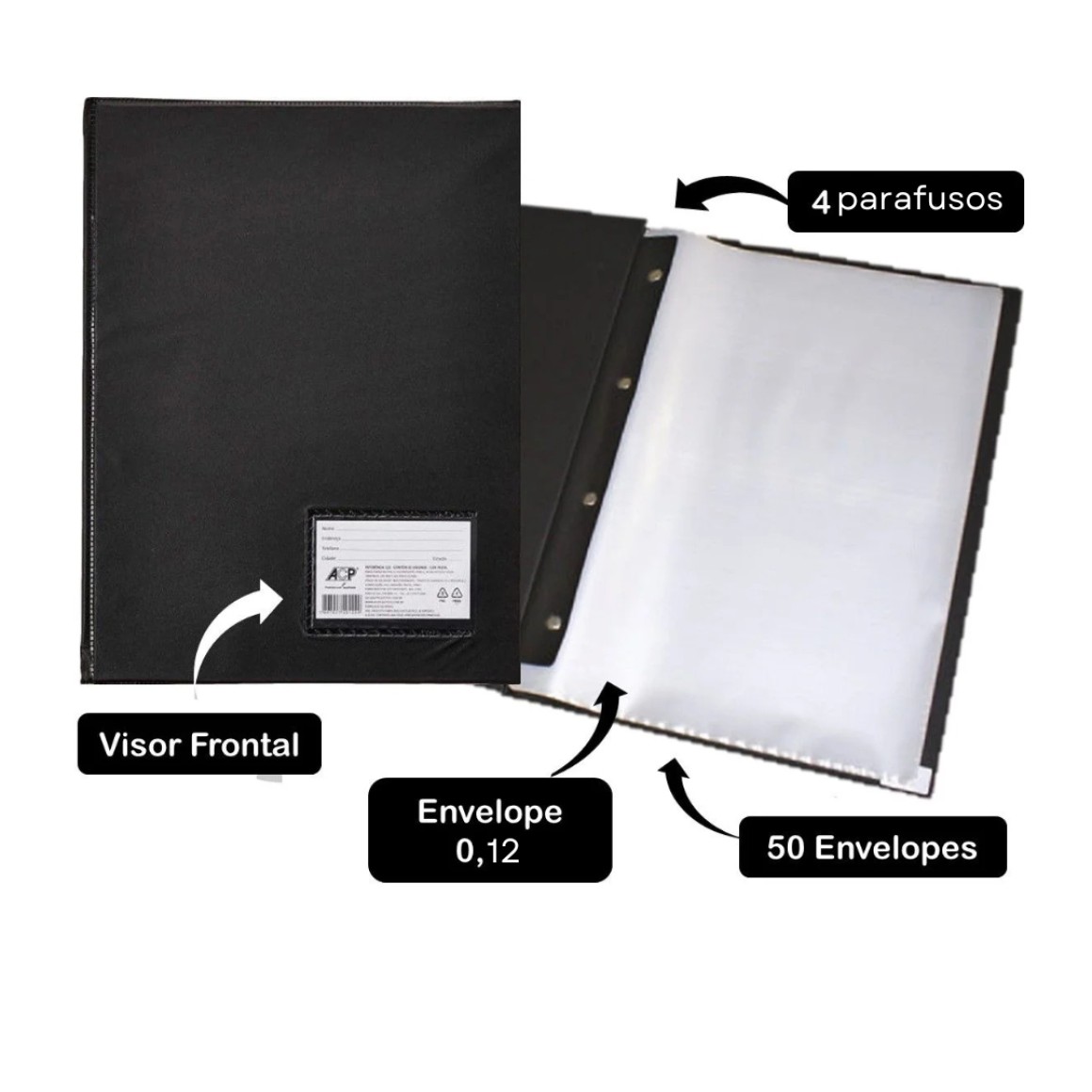 - Pasta Catalogo Portfolio OF. 50 Envelopes 0,12 Medio Preta Com Visor Com Parafuso Ref.124M ACP