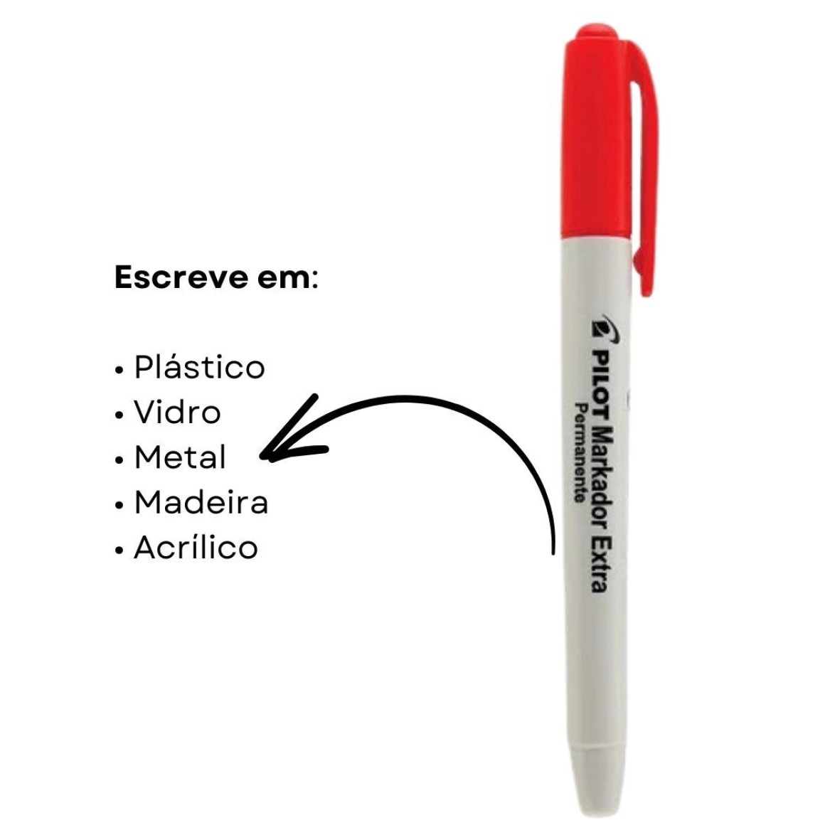• O marcador permanente Extra é a escolha ideal para marcações diversas, apresentando toda a qualidade característica da marca PILOT. Desenvolvido para proporcionar uma experiência de marcação excepcional, é indicado para uso em diversas superfícies, como acrílico, papéis, vidro, madeira, metal, cartão, papelão e plástico.