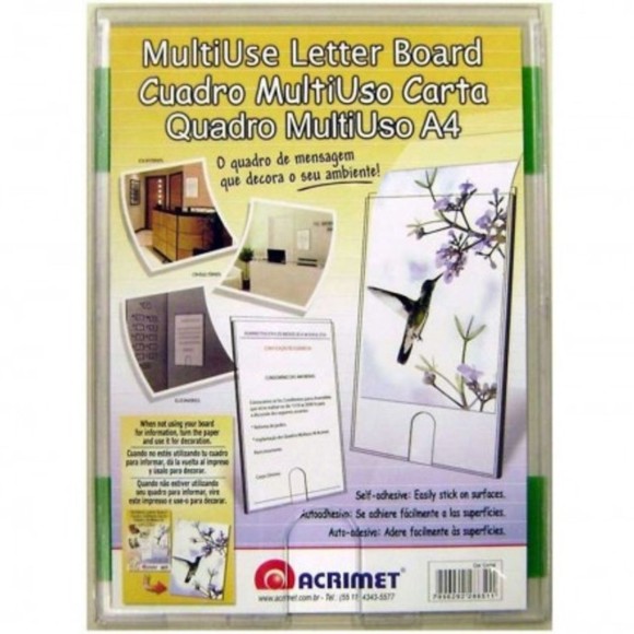 • O Quadro Multiuso A4 é fabricado em poliestireno com padrão de alta qualidade, é ideal para expor avisos e comunicados.