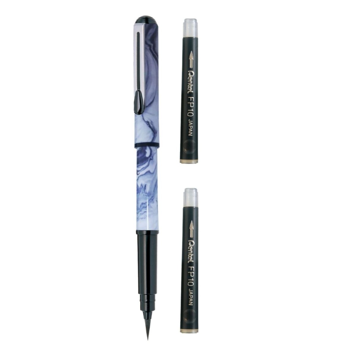 Caneta Brush Preta Pocket Marmore + 2 Refil PENTEL