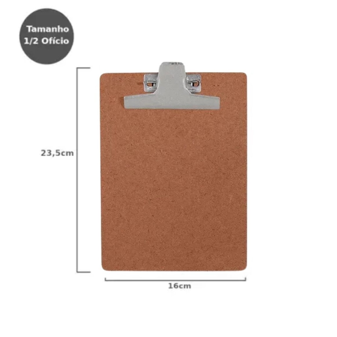 • Prancheta em MDF, possui um ótimo acabamento dos dois lados, com os cantos arredondados e prendedor plástico de alta resistência.