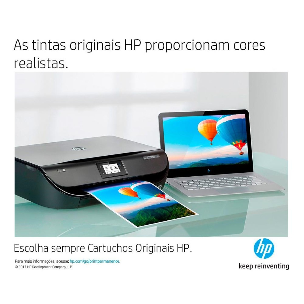 • Impressão sustentável, os cartuchos HP originais são feitos com até 50% de material reciclado.