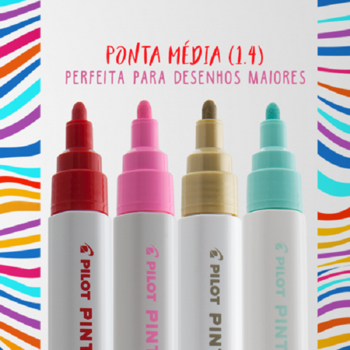 O marcador multi-superfície Pilot Pintor é rico em pigmentos que garante cores vivas. Sua tinta à base de água, cobre qualquer superfície. Mesmo aquelas mais escuras, permitindo utilizar cores mais claras por cima de mais escuras com total nitidez.