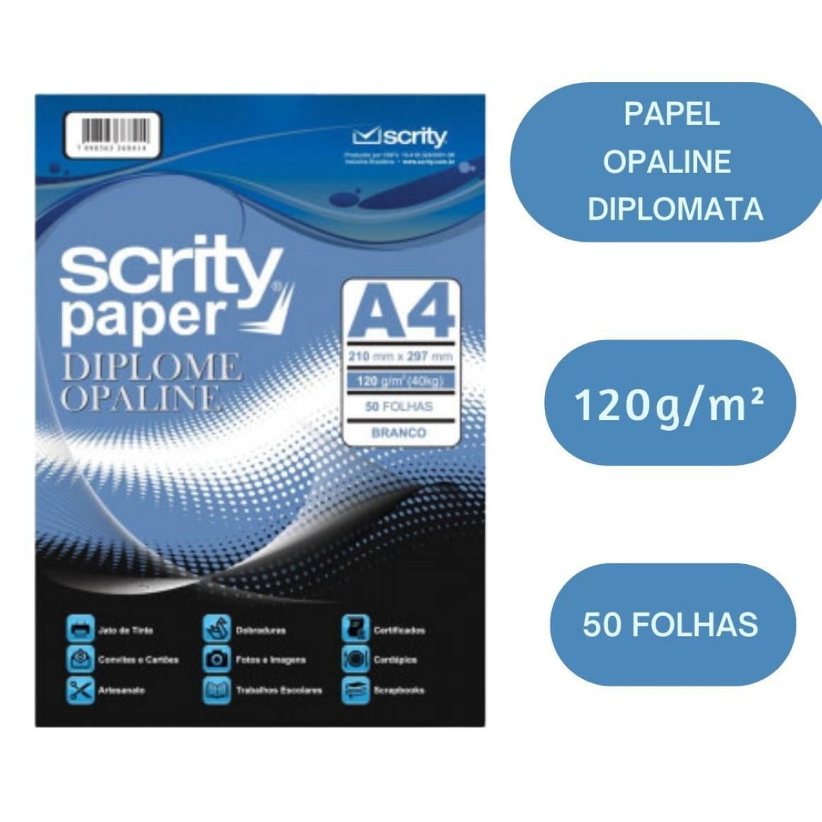 Papel A4 Diplomata/Opaline 120gr Branco Com 50 Folhas SCRITY