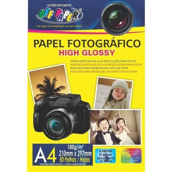 Papel Fotografico High Glossy Inkjet A4 180gr Pacote Com 50 Folhas OFF PAPER